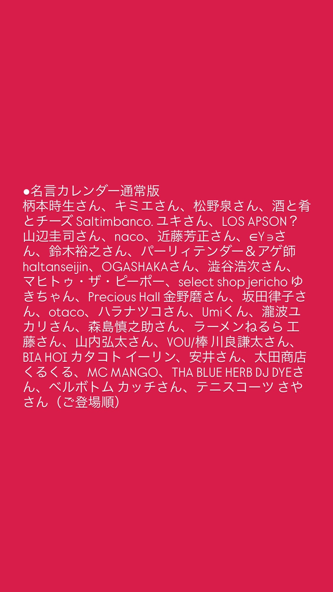こちらは毎年定番で作らせていただいている「通常版」。何だこれ系の四方山迷言から、ちょっぴり辛口の毒舌発言や、謎が謎を呼ぶ文脈逸脱ラビリンス系珍言などなど、あの日あの夜に忘れられていくはずだった言葉の数々が紙面で甦り摩訶不思議に煌めいて、日めくりしたアナタの心に時空を超えてぶっ刺さる!?合計31名言をところ狭しでご掲載しております。